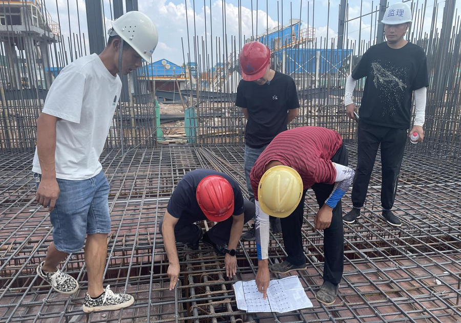 9月4日,區(qū)住建局質(zhì)監(jiān)站對(duì)綿陽城西建筑固廢消納場(chǎng)項(xiàng)目成品庫正負(fù)零板鋼筋進(jìn)行驗(yàn)收。(素材來源:業(yè)務(wù)部 陳星)