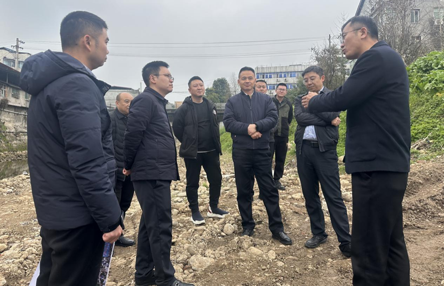 2月26日,區(qū)委常委、紀委書記、監(jiān)委主任汪勁宇帶隊調研綿陽市安州區(qū)秀水河堤防治理工程建設情況。(素材來源:工程項目部 何明鴻)