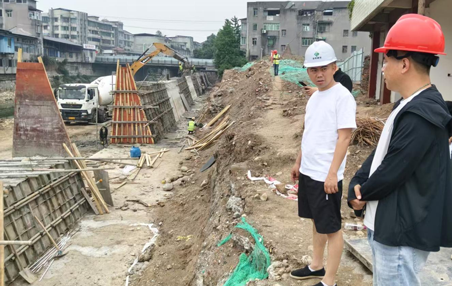 5月17日,公司副總經(jīng)理馮文生帶隊到綿陽市安州區(qū)秀水河秀水鎮(zhèn)場鎮(zhèn)段防洪治理工程檢查項目建設情況。(素材來源:工程項目部 袁慶)