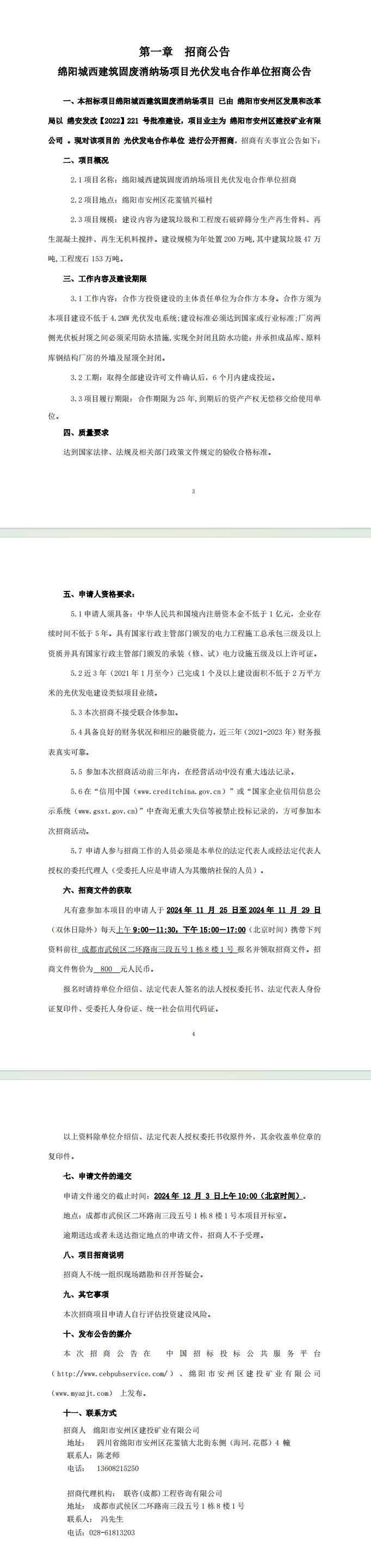 綿陽城西建筑固廢消納場(chǎng)項(xiàng)目光伏發(fā)電合作單位招商公告